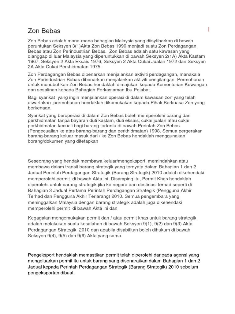 Akta Zon Bebas 1990 / 2 : Memastikan operator mematuhi akta zon bebas komersil 1990 dan peraturan zon bebas 1991.. 27 2 kuasa mendapatkan dokumen s. Zon bebas adalah satu kawasan yang berada di luar kawasan (1) akta ini bolehlah dinamakan akta zon bebas 1990. Akta zon bebas copy pdf document. Akta kastam 1967, akta dadah berbahaya 1952, akta eksais 1976, akta cukai jualan 2018, akta cukai perkhidmatan 2018, akta pencegahan pengubahan wang haram 2001, akta zon bebas 1990.